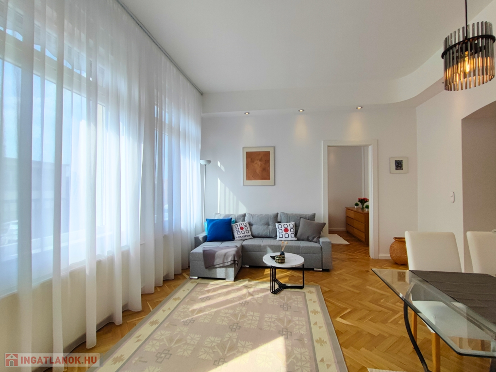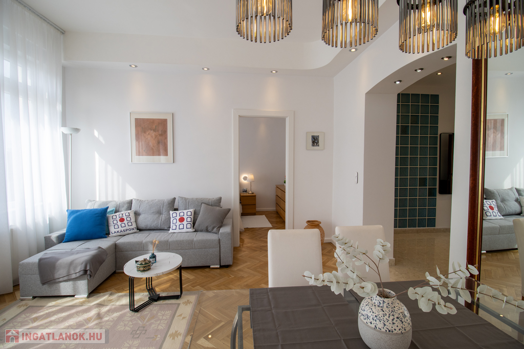 Kiadó egy különleges hangulatú, 62 m²-es, nappali + 1,5 szobás lakás Budapest belvárosában, egy elegáns társasház legfelső szintjén.