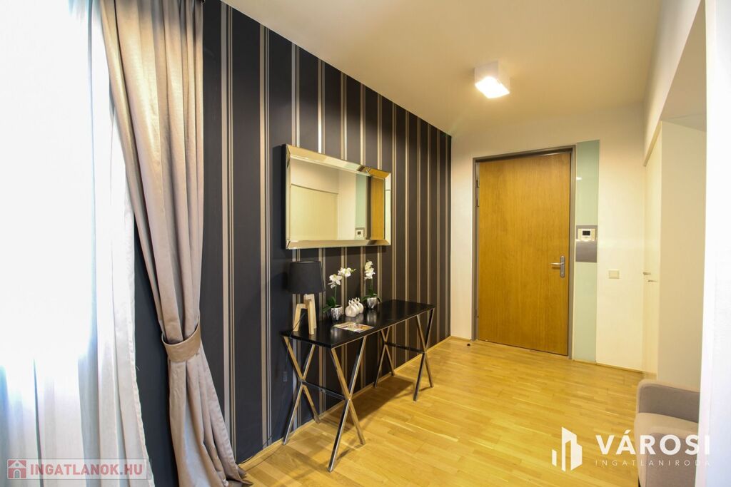 Az elegáns épületben 24 órás portaszolgálat és konditerem működik, illetve saját teremgarázs és tároló tartozik a lakáshoz. Több lift is található, melyek a mélygarázshoz, vagy az épület különböző bejárataihoz visznek.
