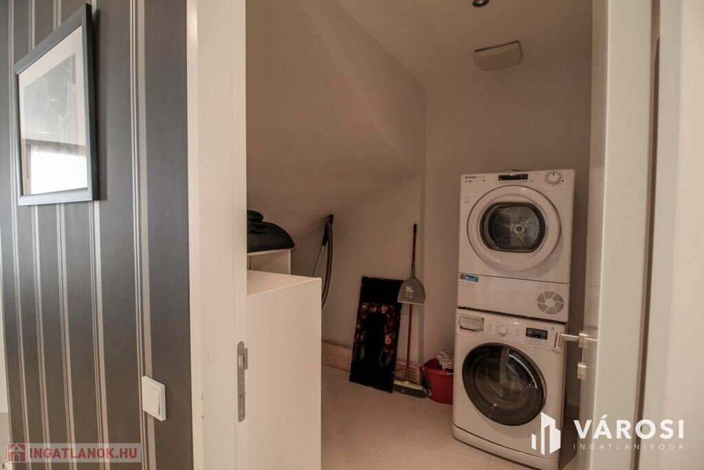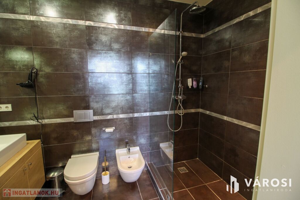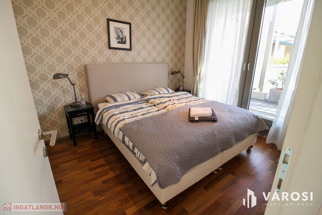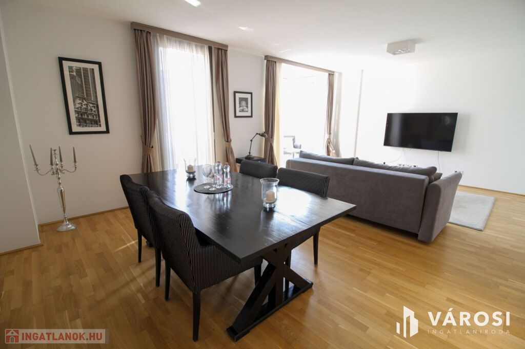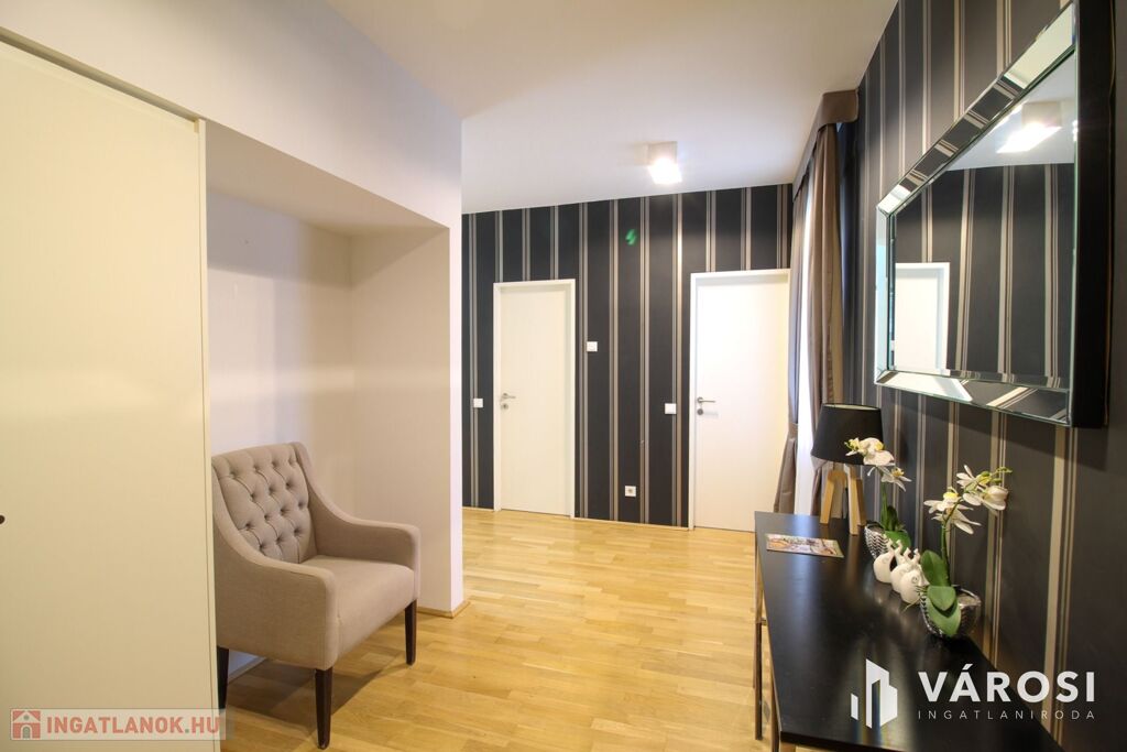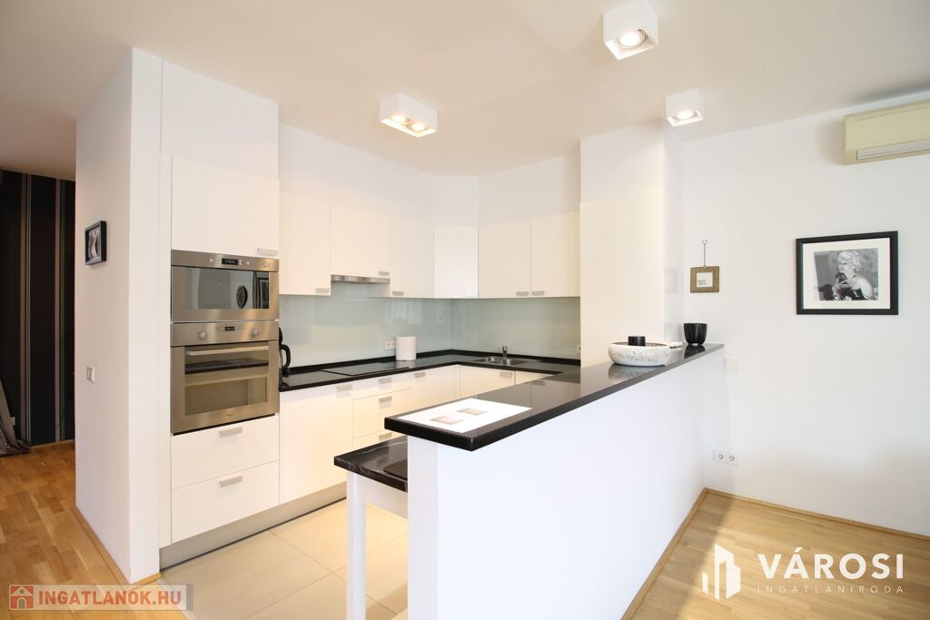 A duplex lakás az épület legfelső, 5. emeletén helyezkedik el, így az üvegplafon varázslatos kilátást enged az égboltra. A 140 m2-en található a bejárati szinten egy tágas és napsütötte amerikai konyhás nappali, egy vendégmosdó és egy tároló helyiség, vagy mosószoba, míg az emeleten van két hálószoba, melyekből külön saját fürdőszoba nyílik (az egyik fürdőkádas, a másik zuhanykabinos), egy panorámás nappali és egy hangulatos erkély. Bútorozottan és gépiesítve várja új bérlőit. A megfelelő hőmérsékletről házközponti fűtés gondoskodik, illetve egyedileg szabályozható fal-, padló-, mennyezetfűtéssel és légkondicionálóval.