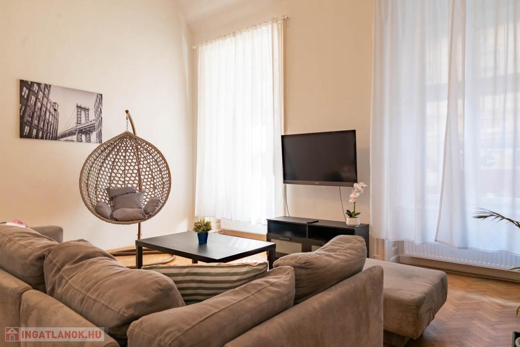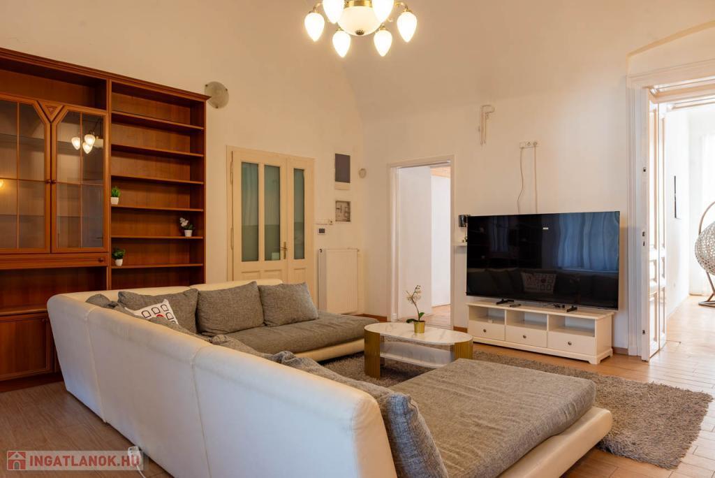Budapest V. kerületében, a Váci utcában, a Fővám tér közelében hosszú távra (minimum 1 évre) kiadó egy igényesen felújított, napfényes, délkeleti fekvésű, 165 m-es, 2. emeleti lakás.