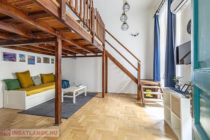 Kiadó a Jókai téren, a VI. kerület szívében egy 50 m²-es, galériás, 1 szobás, bútorozott és teljesen gépesített lakás. A lakás tágas, világos, praktikus elrendezésű, azonnal otthonos hangulatot áraszt.