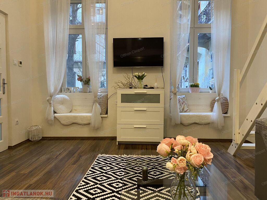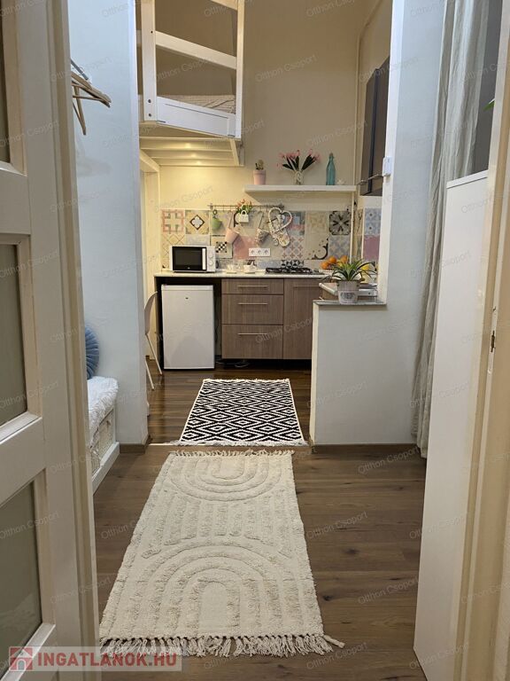 Kiadó egy 38 m²-es, + 2 galériával (összesen kb. 9 m²) rendelkező, praktikusan kialakított 1 szobás földszinti, teraszos felújított bútorozott, gépesített lakás Budapest VI. kerületében, a belváros közepén – mégis csendes környezetben.EGYEDÜLÁLLOKNAK-PÁROKNAK VAGY PÁROKNAK 1 GYERMEKKEL