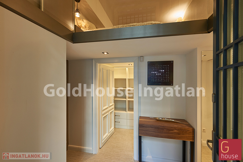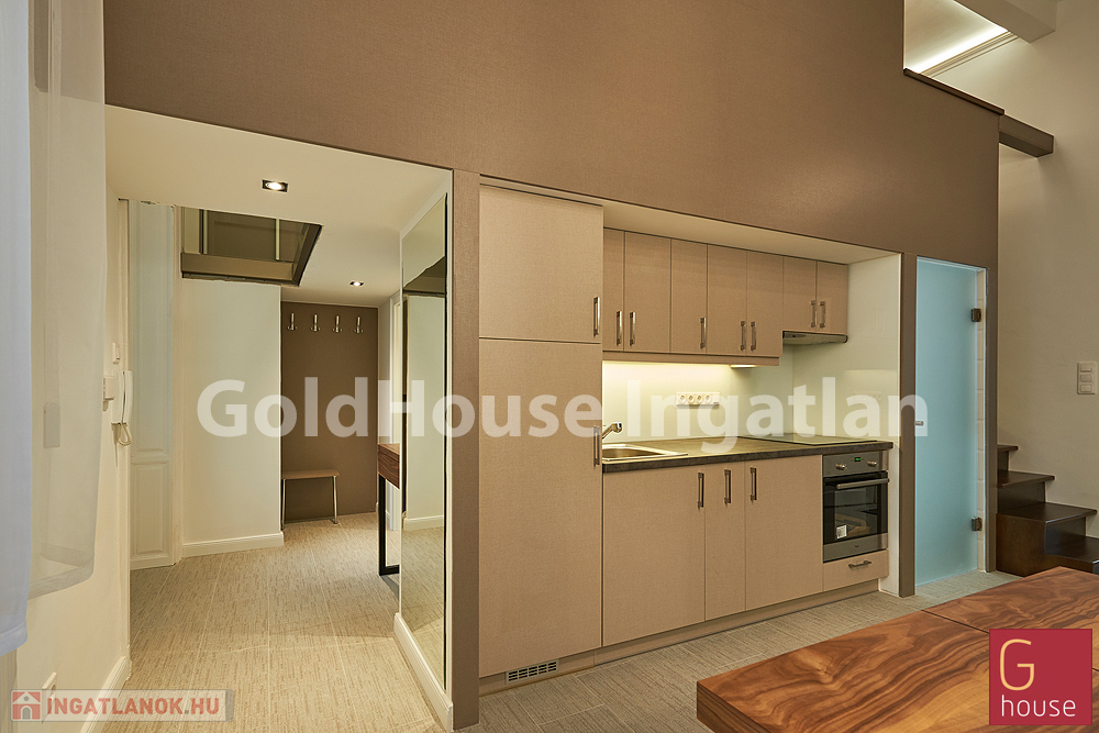 A 69 m2-es ingatlannak világos nappalija van dolgozósarokkal, ezen kívül egy étkezős konyha, egy gardrób, zuhanyzós fürdőszoba és mellékhelyiség található az alsó szinten. A hálórész a galérián kapott helyet, kihasználva a fantasztikus belmagasság adta lehetőségeket. A berendezés nagyon szép, igazán kényelmes otthona lehet egy egyedülálló bérlőnek, vagy egy párnak.