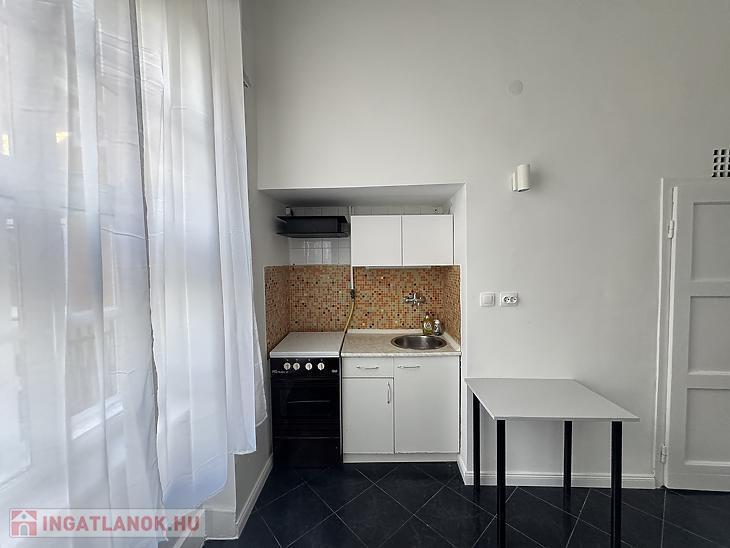 A lakás bútorozott és gépesített és azonnal költözhető. A nappali tágas, galériás kialakítású, a lépcső alatt gardrób található, amely ideális tárolásra. A kis konyha hűtőszekrénnyel, mikróval és tűzhellyel rendelkezik.