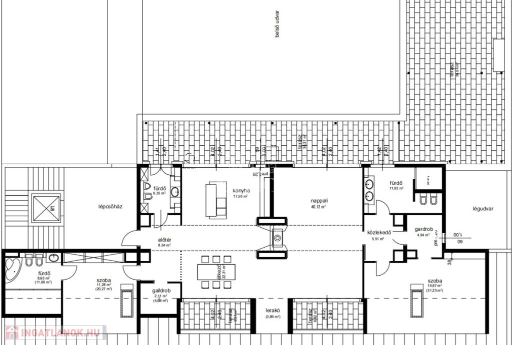 Tágasság, hatalmas üvegfelületek, közel 3 méteres belmagasság és rengeteg napfény jellemzi az ingatlant.