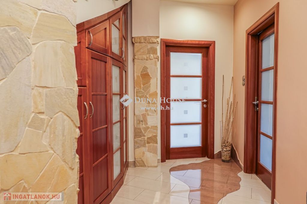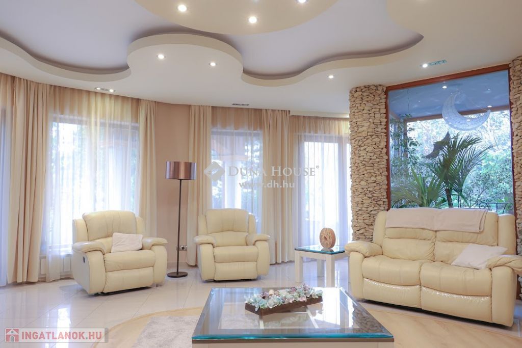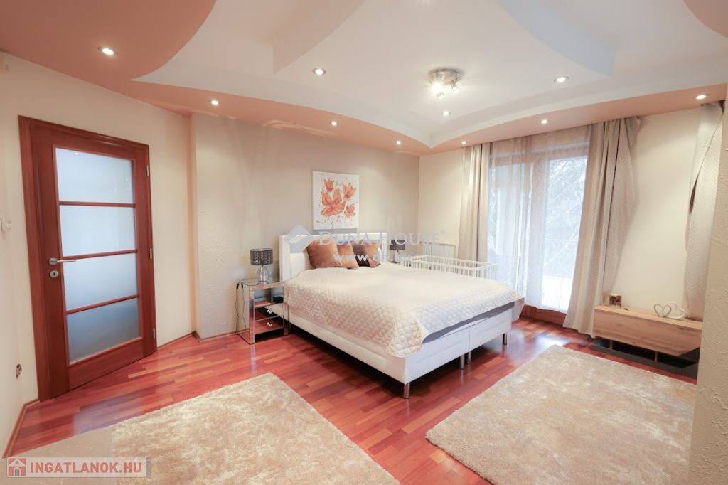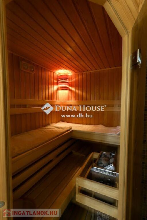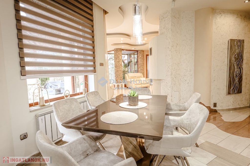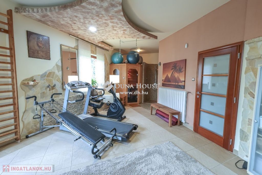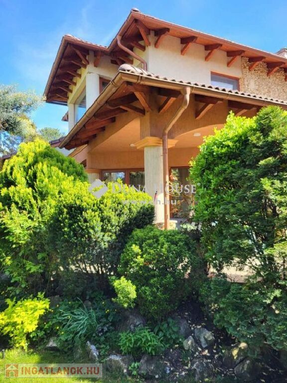 Kert jellemzői: Egyedi növények, örökzöldek , sziklakert, 2,5 méter mély kerti tó található. Bontott téglából 2,70 m magas kerítés a ház körül. Elektromos nagykapu az udvaron 5-6 autó kényelmesen parkolhat, garázsban 2 autó. Sütögető bontott téglából kialakítva, tágas 20 m2-es fedett terasz teszi kényelmessé a pihenést ami az intim kertre néz. Jakuzzi mellett helyet kapott egy tusoló is.