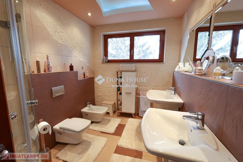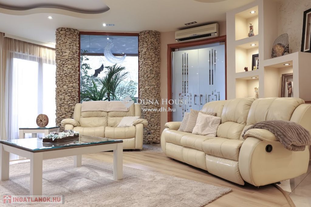 Műszaki paraméterek: Beton alapon 38-as porotherm tégla falazatú, 5 cm szigetelés a ház körül. 3 méter belmagasság, spot lámpák beépítve. Fűtést gázkazán biztosítja tárolóval és inverterrel. Padlófűtés + radiátor. 2 db klíma található a földszinti és emeleti részen 7,5 kw inverteres hűtő+fűtő. Hofstadter nyílászárók, üveg beltéri ajtók a téli kerthez és a közlekedőbe vezető bejáraton. Mile tipusú gépesített konyhabútor az árban. Sötétítő roló és szúnyogháló az ablakokon. Roppant világos, tágas helyiségek jellemzik az ingatlant.