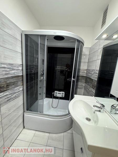 Új bejárati és beltéri ajtók, új burkolatok, konyhabútor, fürdõszoba masszázs zuhanykabinnal felszerelt.