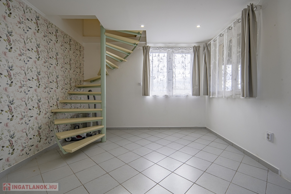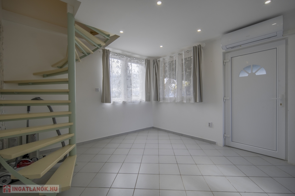 Bruttó 34 m2-es, belső két szintes, 2 szobás, klimatizált, nagy teraszos kertes ház kiadó Ecseren, a Zártkerti dűlőn.