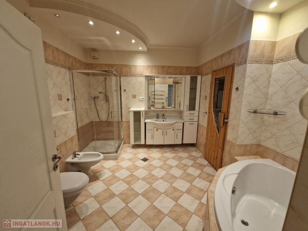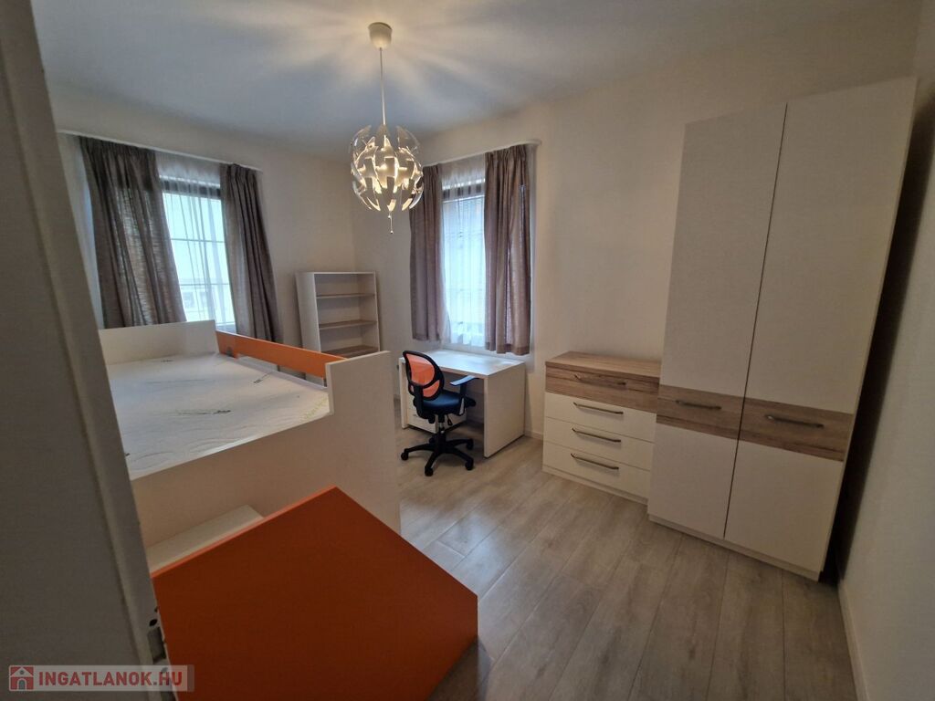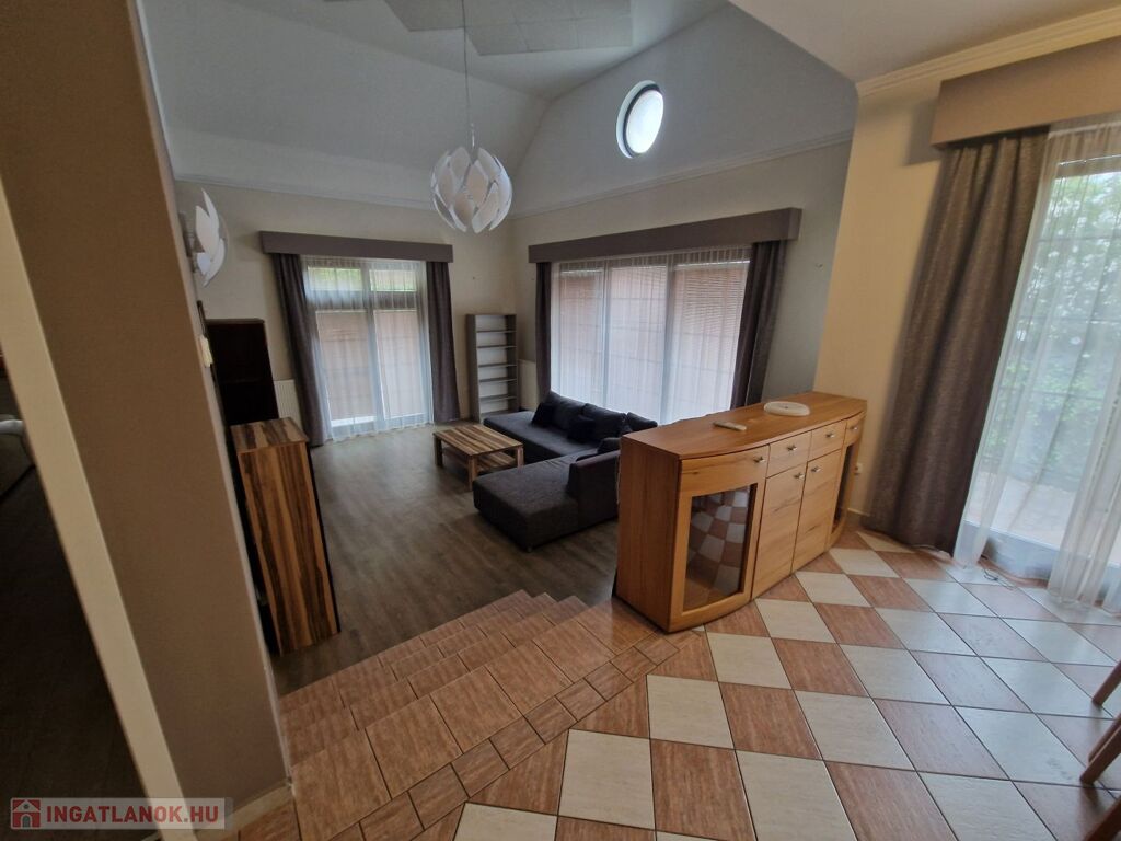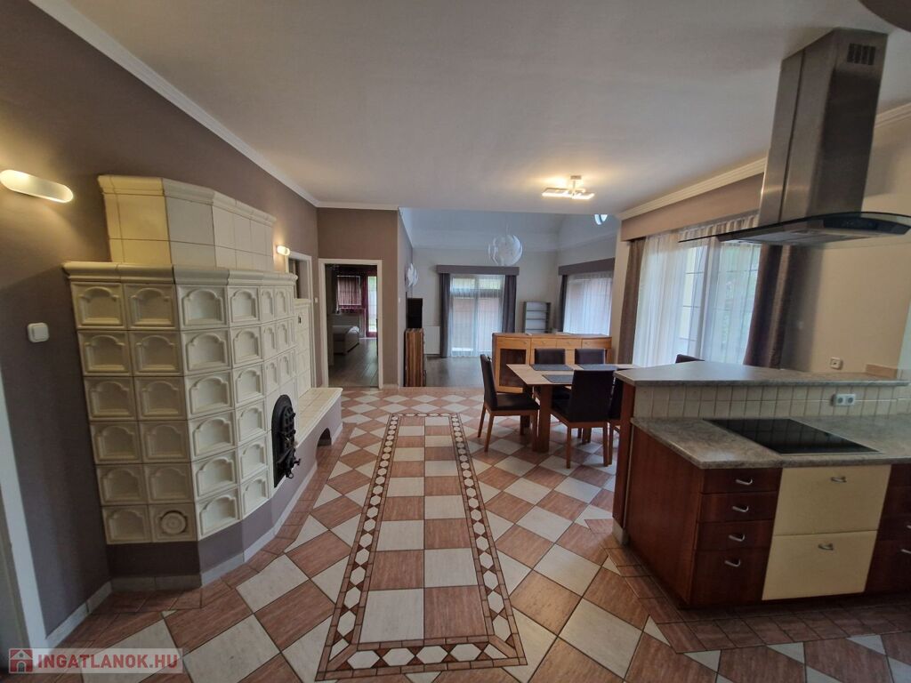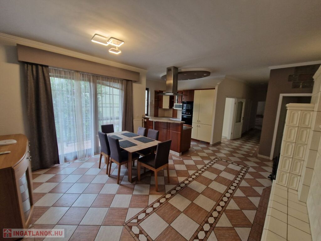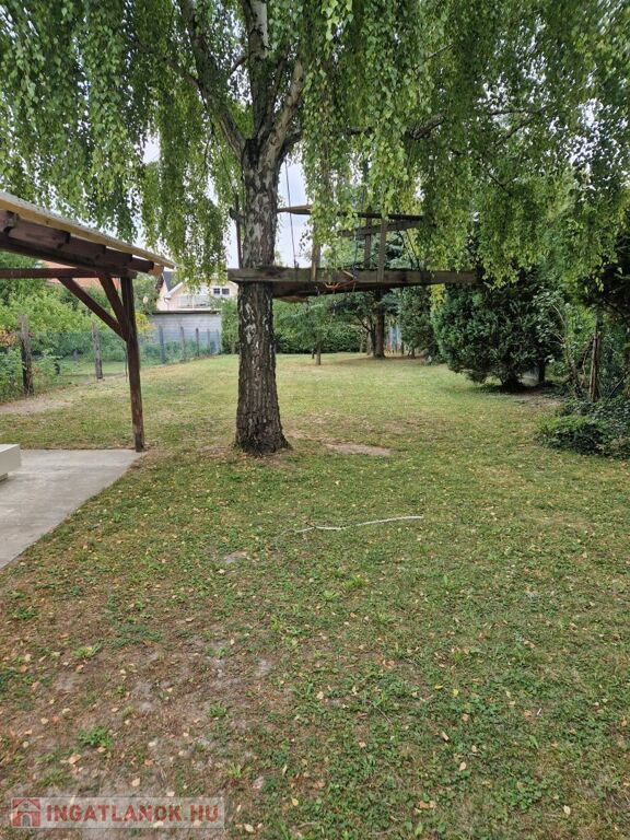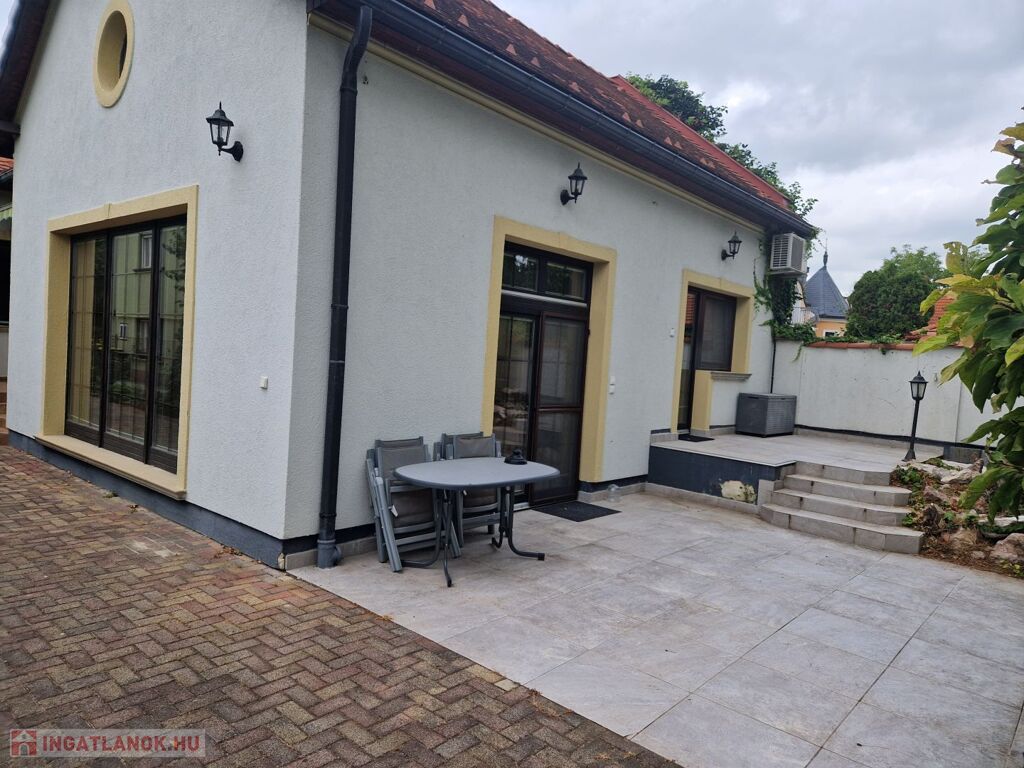 Győr- Révfalu csendes utcájában 1100m2 es parkosított telken, kiadó egy 165m2-es, nappali + 4 hálószobás teljesen gépesített és berendezett családi ház. A ház minden igényt kielégít. Többek között táv vezérelt kert kapu, 60.m2 -es dupla garázs, játszótér, tároló, gyümölcsfák. A ház belső kialakítását tekintva otthonos légkört sugall. Klimatizált szint eltolásos amerikai konyhás nappali, 4 hálószoba, amelyek közül a szülői háló külön fürdőszoba + vécével lett kialakítva, háztartási helyiség, nagy spejz, a gyerekszobáknak egy nagy méretű zuhanyzós + kádas fürdőszoba lett kialakítva. A napi fártság levezetéséről finn szauna gondoskodik. A ház nagy mérete ellenére az átlagos havi rezsi kölsége kb 100 ezer forint.
