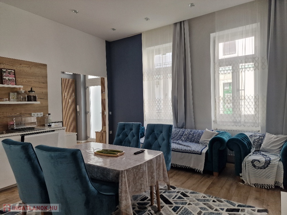 Győr belvárosában kiadó ez a 70 m2-es, teljesen felújított, 3 szoba + nappalis, első emeleti gyönyörű lakás. A teljesen berendezett, gépesített, frissen felújított polgári lakásba csak a bőröndöket kell hozni és már lakható is. Az ingatlanba hosszútávra keressük az új igényes bérlőjét. A bejárat a belső udvarfelőli gangról megközelíthető, mely egy kis erkélyként is funkcionál.