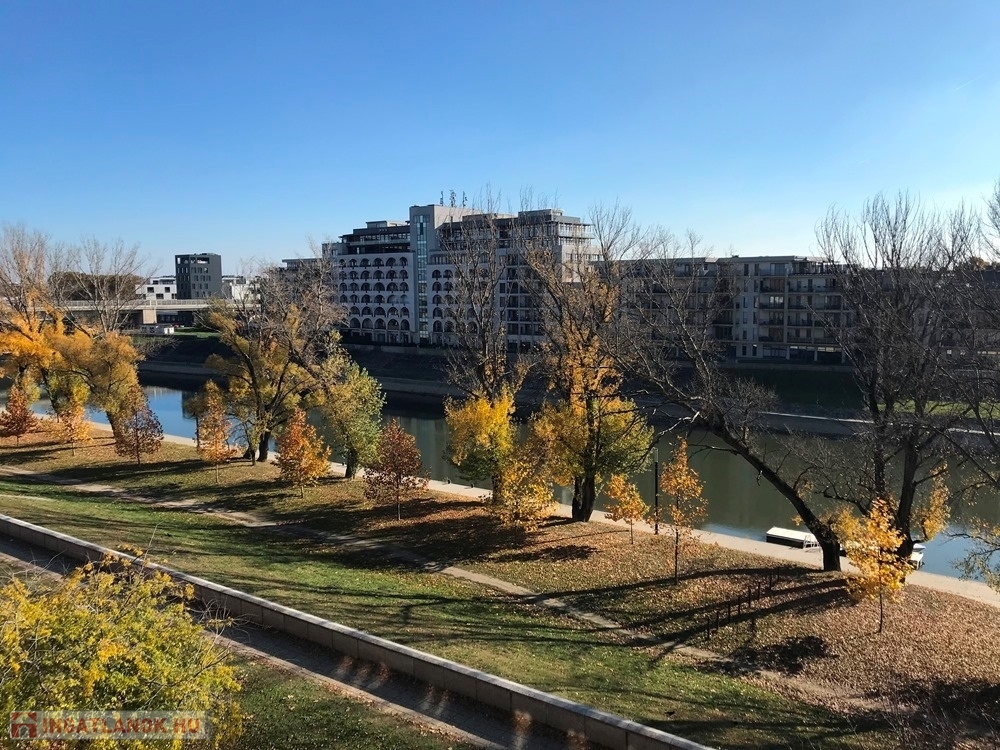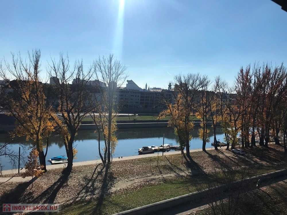 Győr-Révfalu rendkívül kedvelt, klasszikus részén, Belvárostól, Egyetemtől pár perces sétatávolságra, a Dózsa György rakparton, csendes, rendezett társasház ötödik emeletén, teljes felújításon átesett (nyílászáró-, víz-, villanyvezeték csere, fűtéskorszerűsítés, burkolatcsere, új konyhabútor, szaniterek cseréje, festés, stb.) 2 hálószoba + konyha – étkezős, kiváló állapotú 58 m2-es, bútorozott és részben gépesített KLIMATIZÁLT téglalakás kiadó.