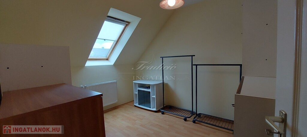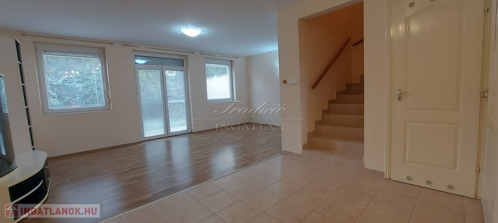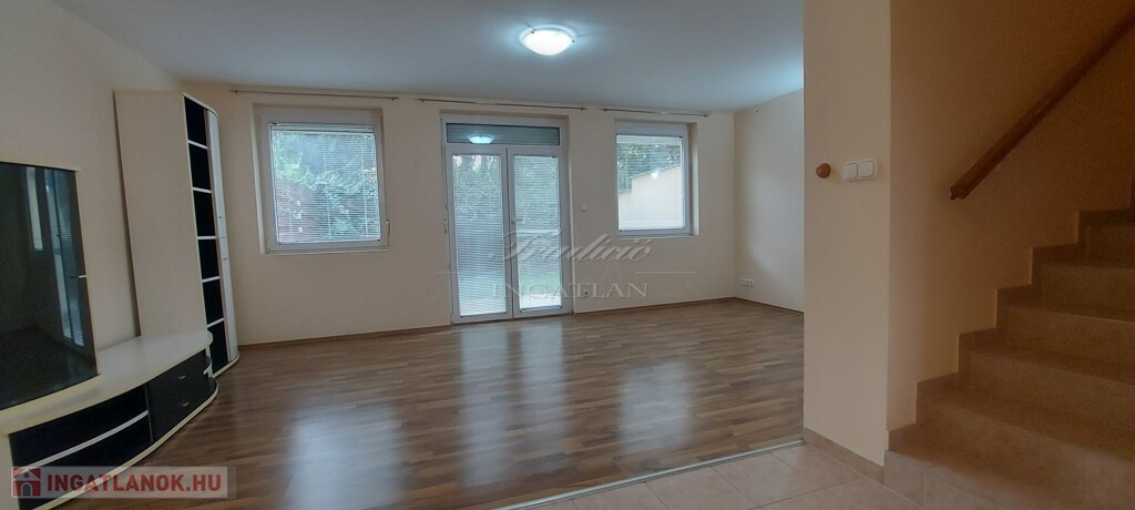 Győr-Szabadhegyen a József A. útról nyíló csendes, forgalommentes utcájában, 96 m2-es, nappali és 3 szobás, 2 fürdőszobás, kb. 2 x 35 m2-es zárt előkerttel és udvarral rendelkező, egyedi fűtéses belső két szintes sorházi lakás, 2 db. kültéri parkolóval, a képeken látható bútorokkal, 2 havi kaucióval, min. 1 évre, max. 4 fős család részére kiadó.