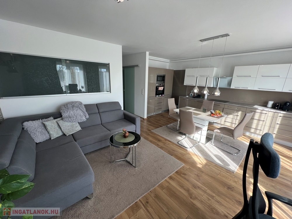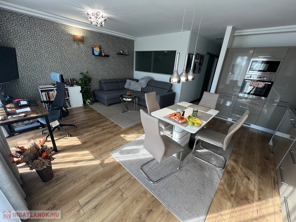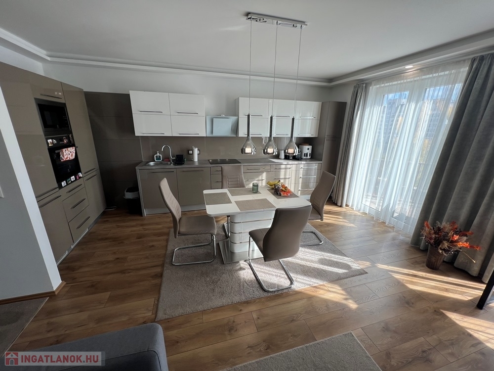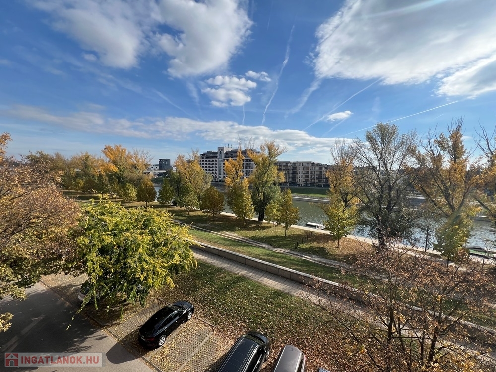 Győr-Révfalu rendkívül kedvelt, klasszikus részén, Belvárostól, Egyetemtől pár perces sétatávolságra, a Dózsa György rakparton, csendes, rendezett társasház negyedik emeletén, teljes felújításon átesett (nyílászáró-, víz-, villanyvezeték csere, fűtéskorszerűsítés, burkolatcsere, új konyhabútor, szaniterek cseréje, festés, stb.) amerikai konyha – étkező – nappali + 1 hálószobás, továbbá, beépített gardróbbal, különálló fürdőszobával, különálló WC-vel és kamrával is felszerelt, kiváló állapotú 55 m2 hasznos alapterületű bútorozott, részben gépesített KLIMATIZÁLT téglalakás, 6,93 m2-es ERKÉLLYEL, PÁRATLAN DUNAI PANORÁMÁVAL kiadó.