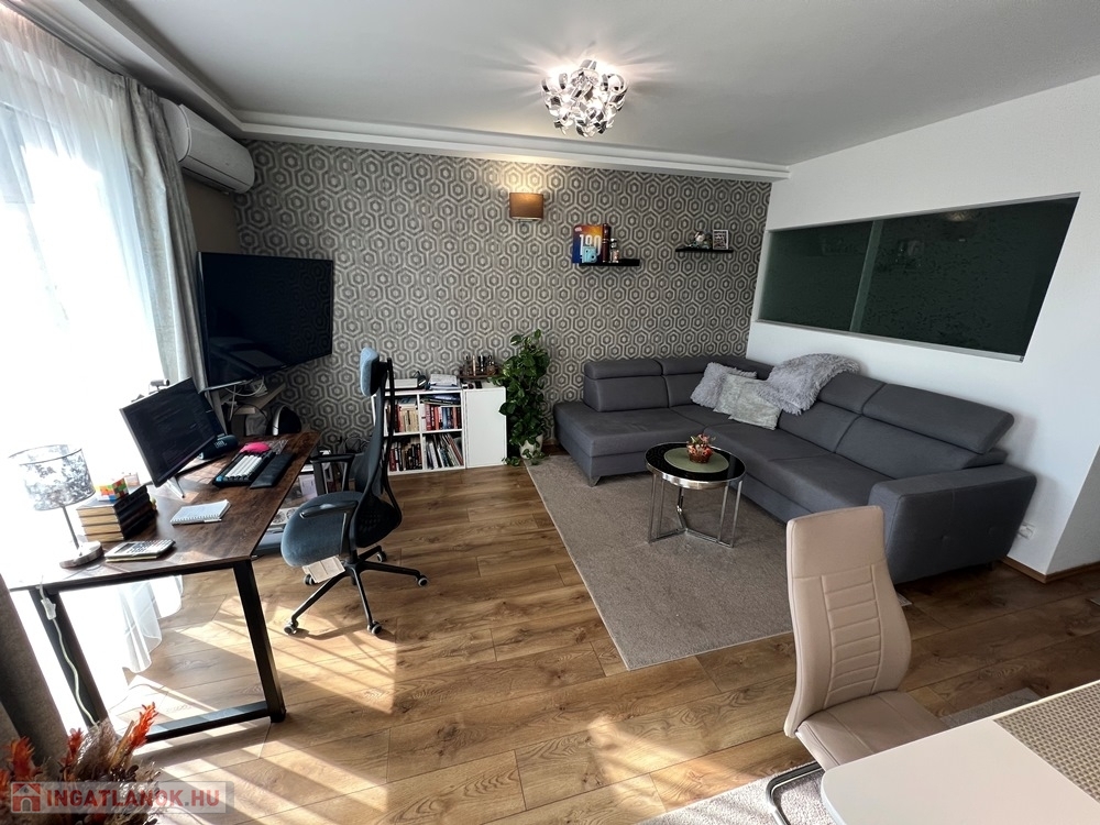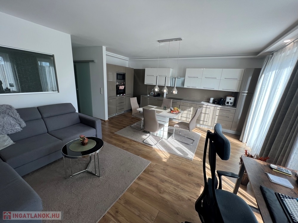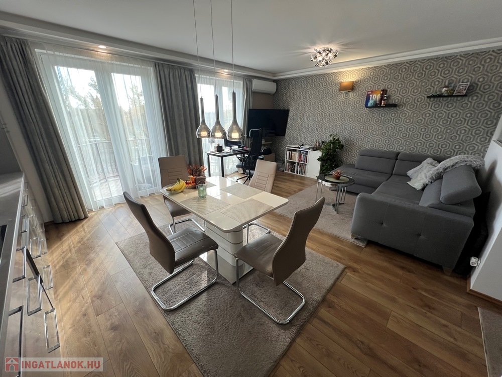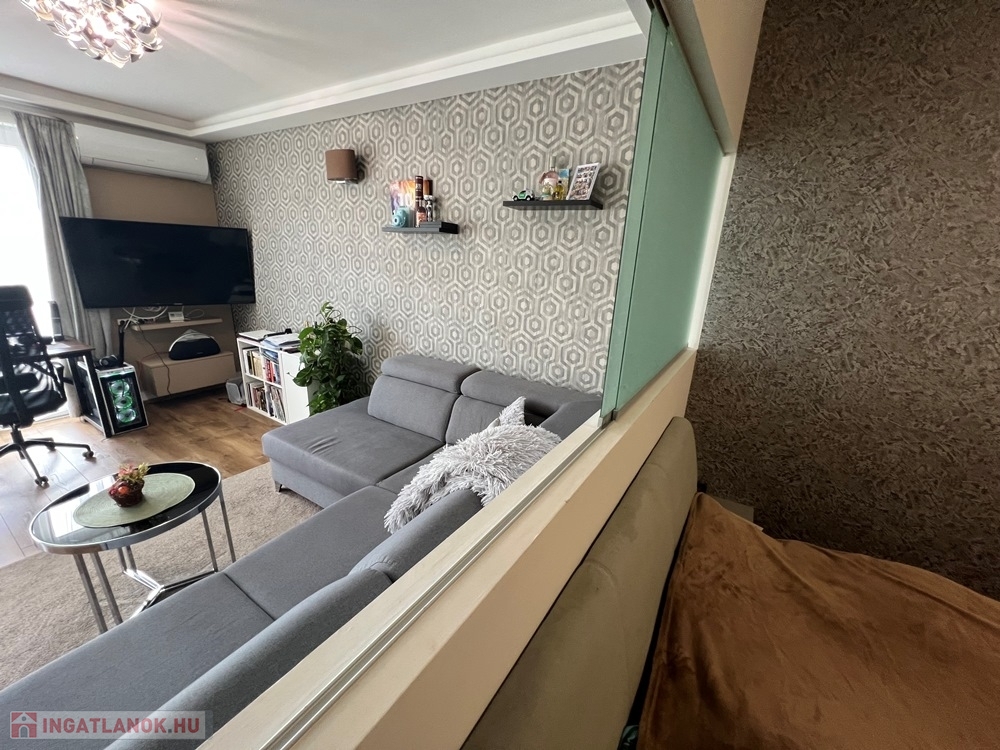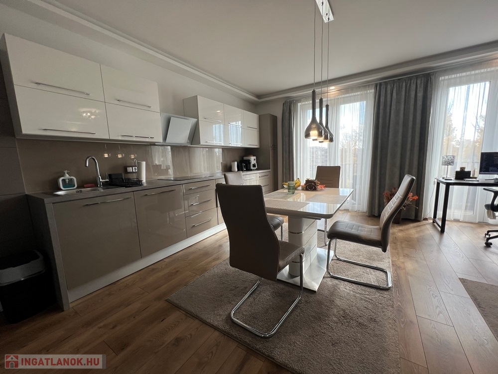 Győr-Révfalu rendkívül kedvelt, klasszikus részén, Belvárostól, Egyetemtől pár perces sétatávolságra, a Dózsa György rakparton, csendes, rendezett társasház negyedik emeletén, teljes felújításon átesett (nyílászáró-, víz-, villanyvezeték csere, fűtéskorszerűsítés, burkolatcsere, új konyhabútor, szaniterek cseréje, festés, stb.) amerikai konyha – étkező – nappali + 1 hálószobás, továbbá, beépített gardróbbal, különálló fürdőszobával, különálló WC-vel és kamrával is felszerelt, kiváló állapotú 55 m2 hasznos alapterületű bútorozott, részben gépesített KLIMATIZÁLT téglalakás, 6,93 m2-es ERKÉLLYEL, PÁRATLAN DUNAI PANORÁMÁVAL kiadó.