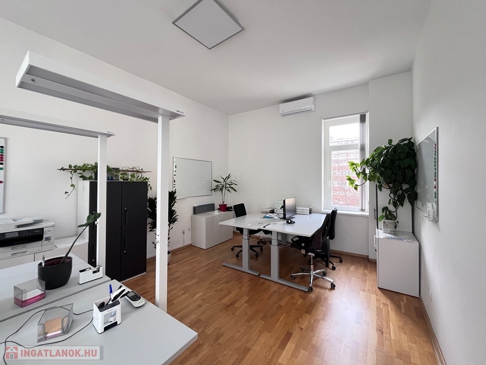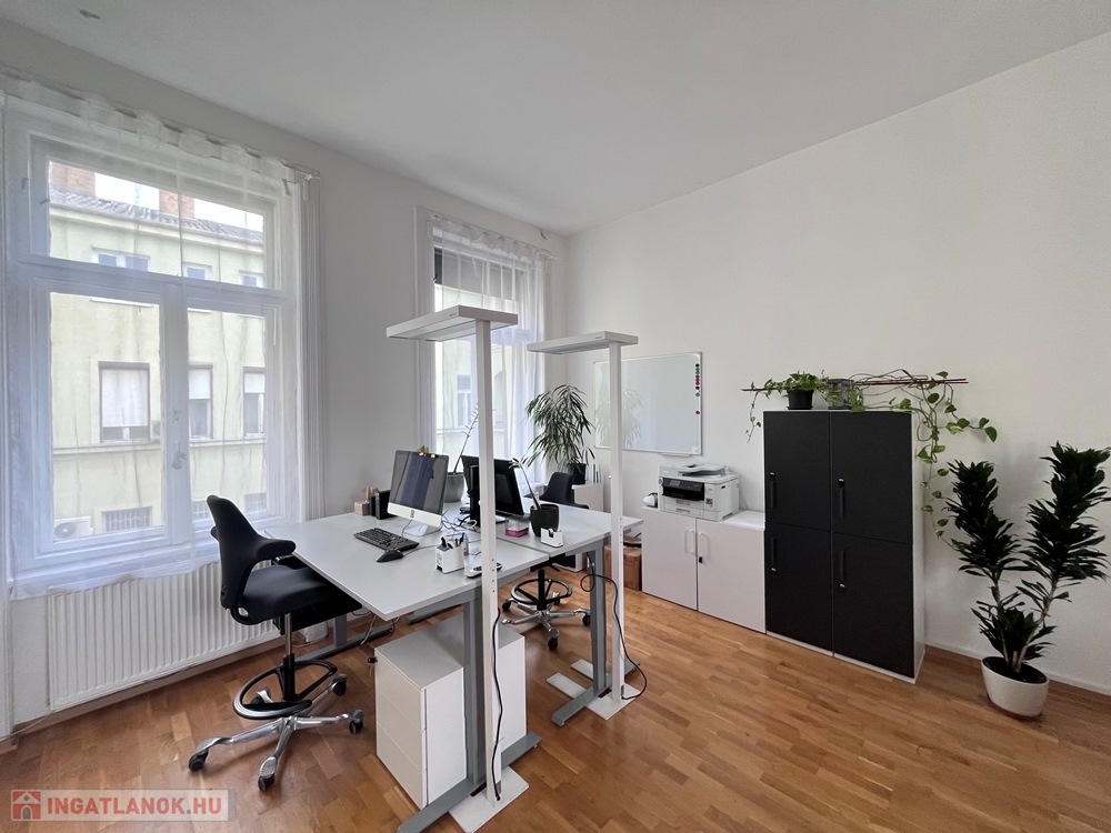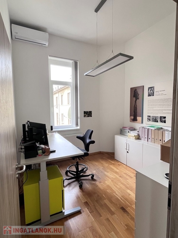 Győr-Belvárosának rendkívül kedvelt részén, Baross úttól 1 perces sétatávolságra, rendezett, tiszta társasház 2. emeletén, jelentős felújításokon (részben nyílászárócsere, víz-, villanyvezetékcsere, új konyhabútor, burkolatcsere, festés, gépészeti anyagok, szaniterek cseréje, fűtéskorszerűsítés, stb.,) átesett, konyha + étkező + nappali/iroda + 1 hálószobás/iroda, kiváló állapotú, 59 m2-es, KLIMATIZÁLT, bútorozatlan téglalakás, - irodai célra kiválóan alkalmas - saját 3 m2-es tárolóval kiadó.
