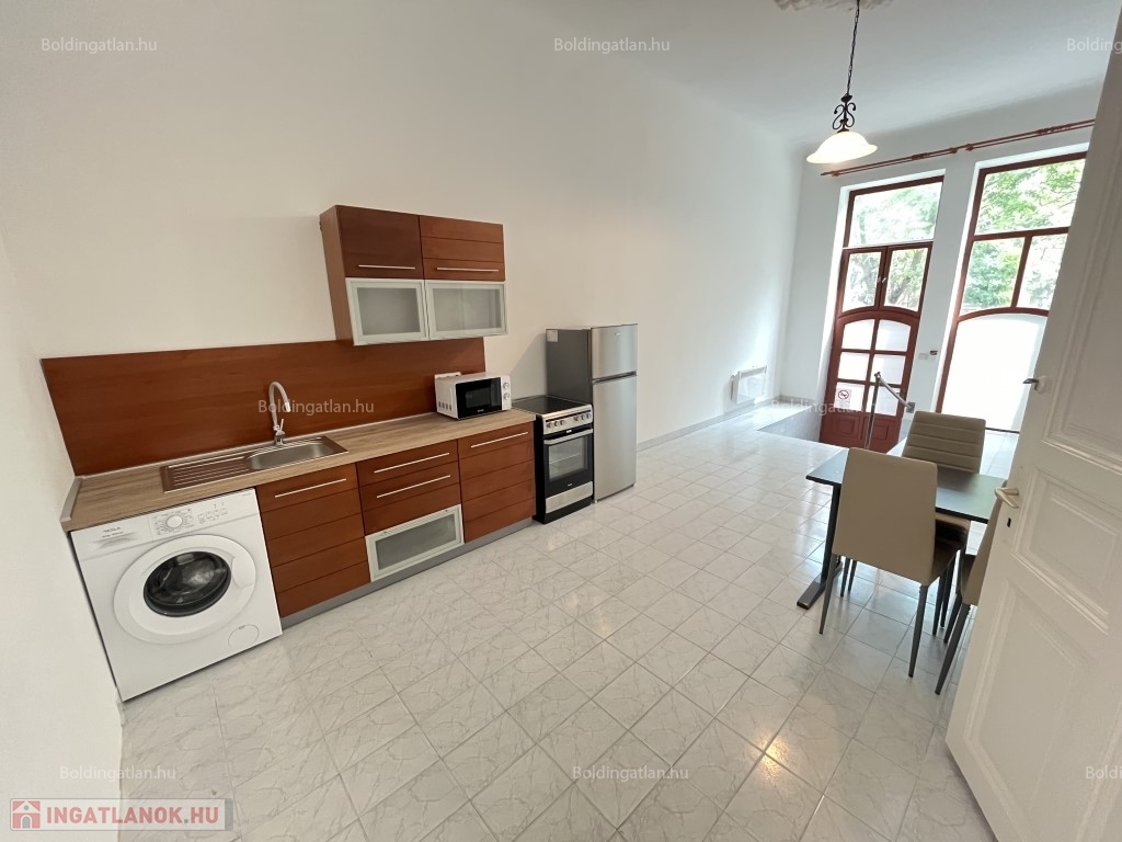 Kaposváron a belvárosban, a Dózsa Gy. u-ban, utcafronti bejárattal 54 m2-es földszinti tágas - a képeken látható bútorokkal és felszereltséggel - lakás hosszú távra kiadó. Az ingatlanban 28 m2-es szoba, előtér-konyha-étkező, fürdőszoba-wc helyiségek találhatóak, a fűtése elektromos fűtőpanelekkel és elektromos törölköző szárítós radiátorral megoldott. A lakás közelében található számos közintézmény, a kórház, Okmányiroda, vasútállomás, vagy akár a Kossuth tér pár perc sétára van. Bérleti díj: 120.000.- Ft/hó + rezsi + 2 havi kaució