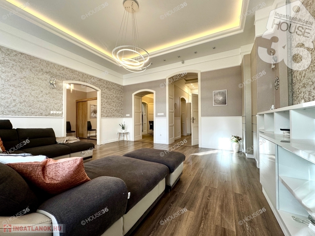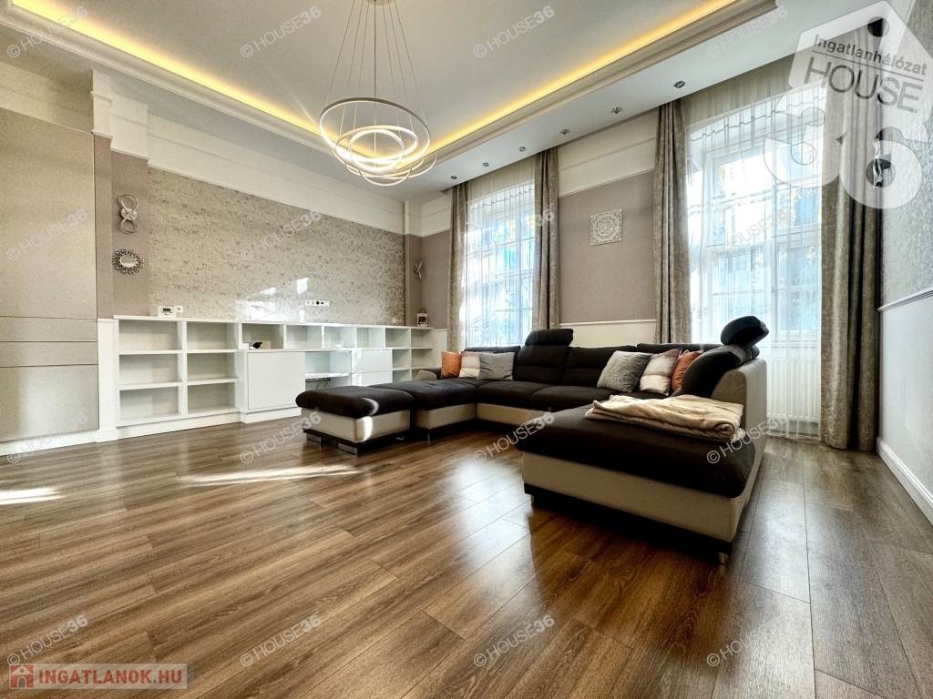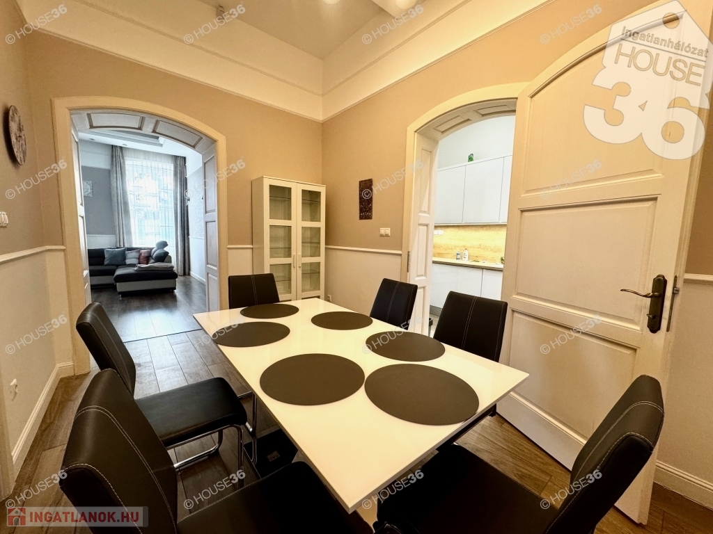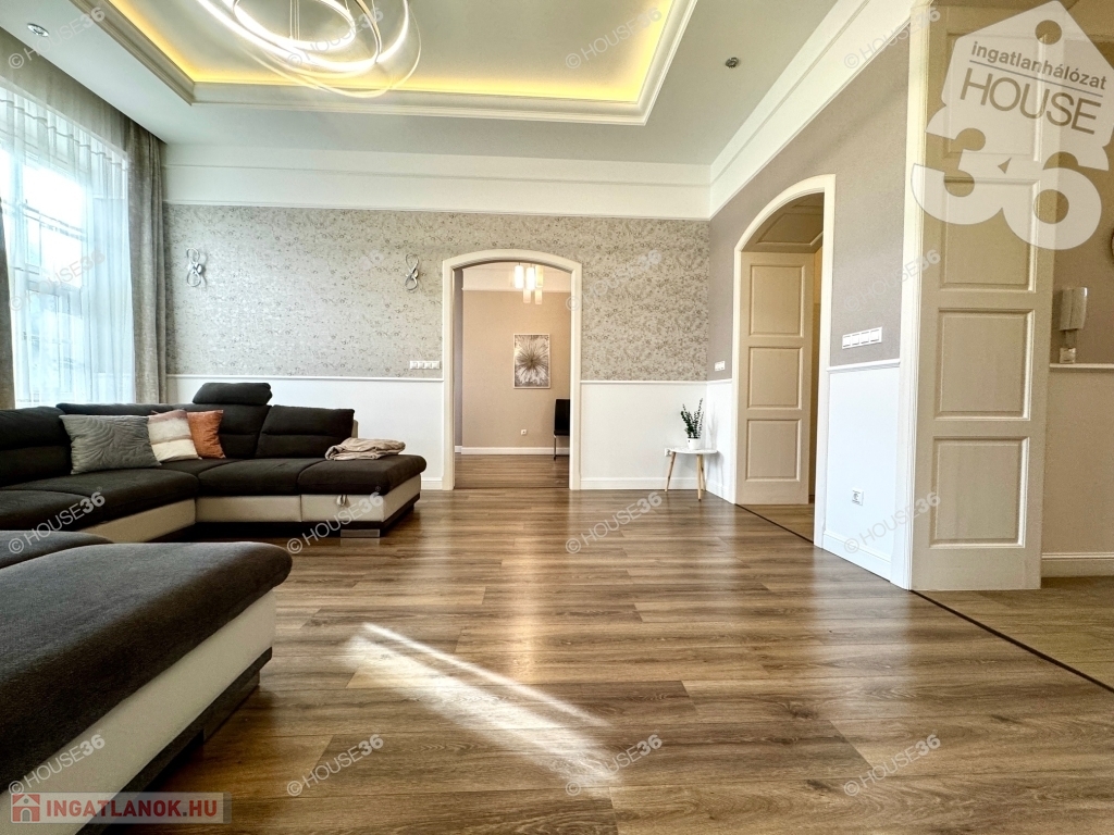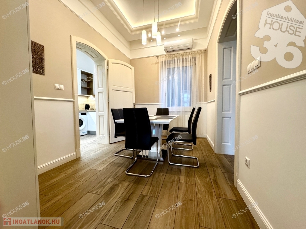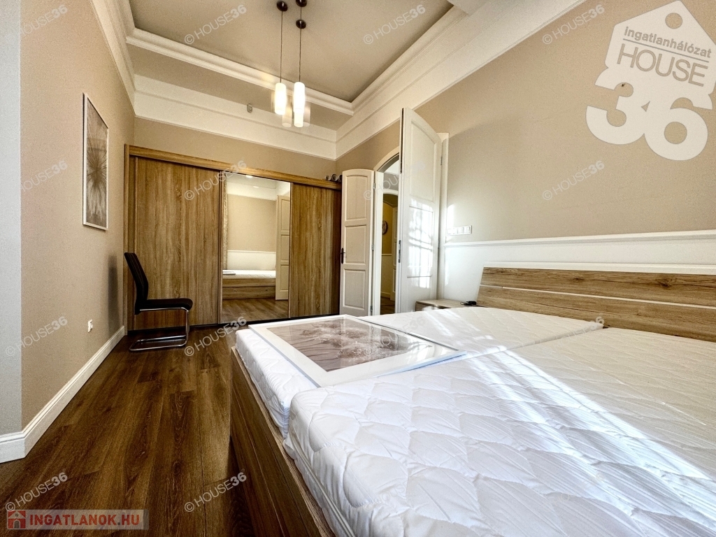 Kecskeméten, a Katona József Nemzeti Színház mellett, fsz.-i, műemlékké nyilvánított tégla épületben, 80 m2-es nagy nappali+ 1 szobás, luxus minőségben felújított lakás kiadó!