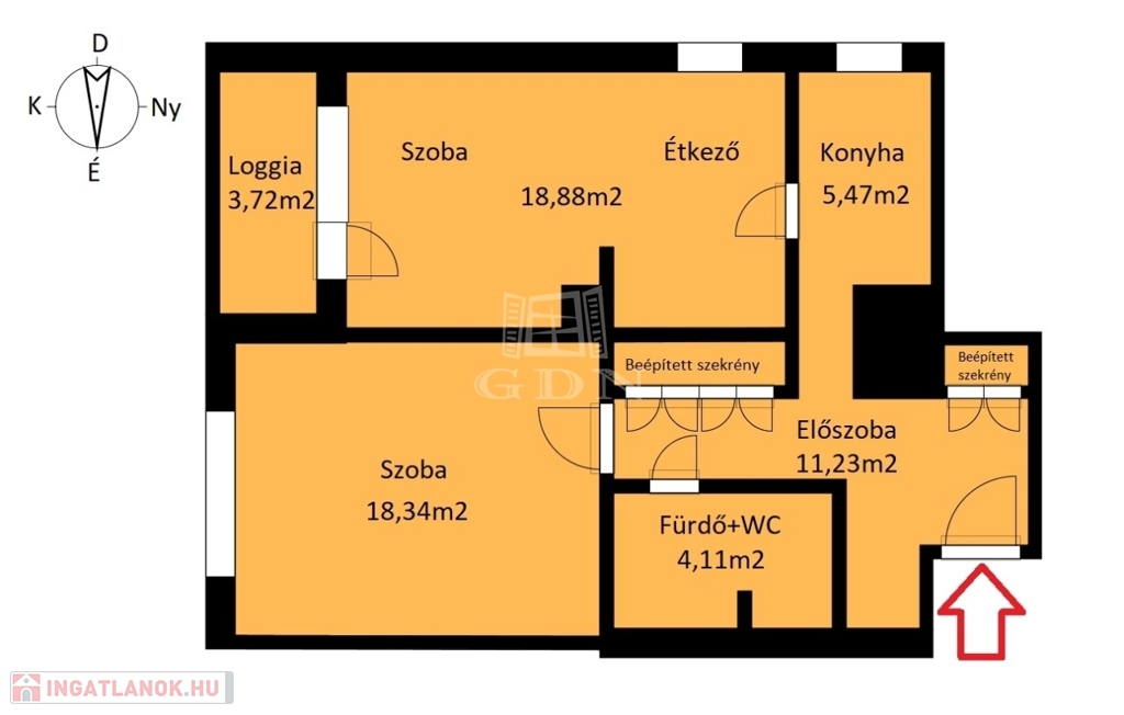 -az előszobában, beépített szekrények biztosítják a cipők, ruhák vagy egyéb tárgyak tárolását