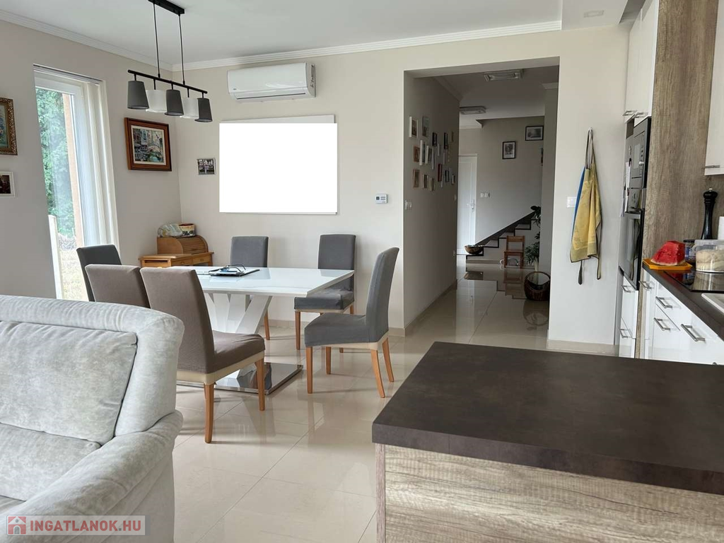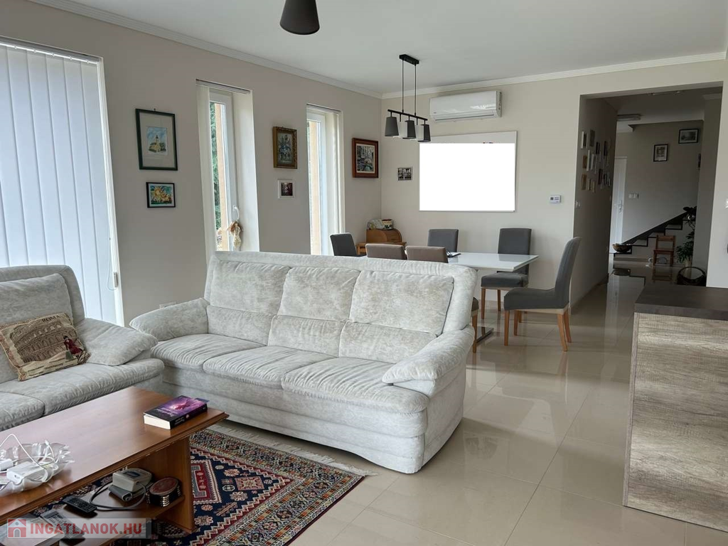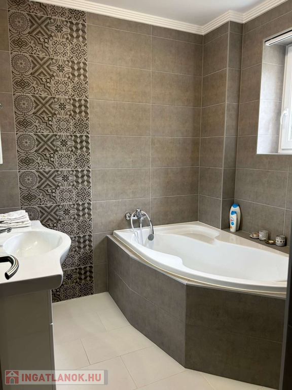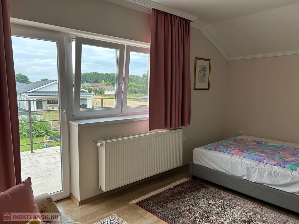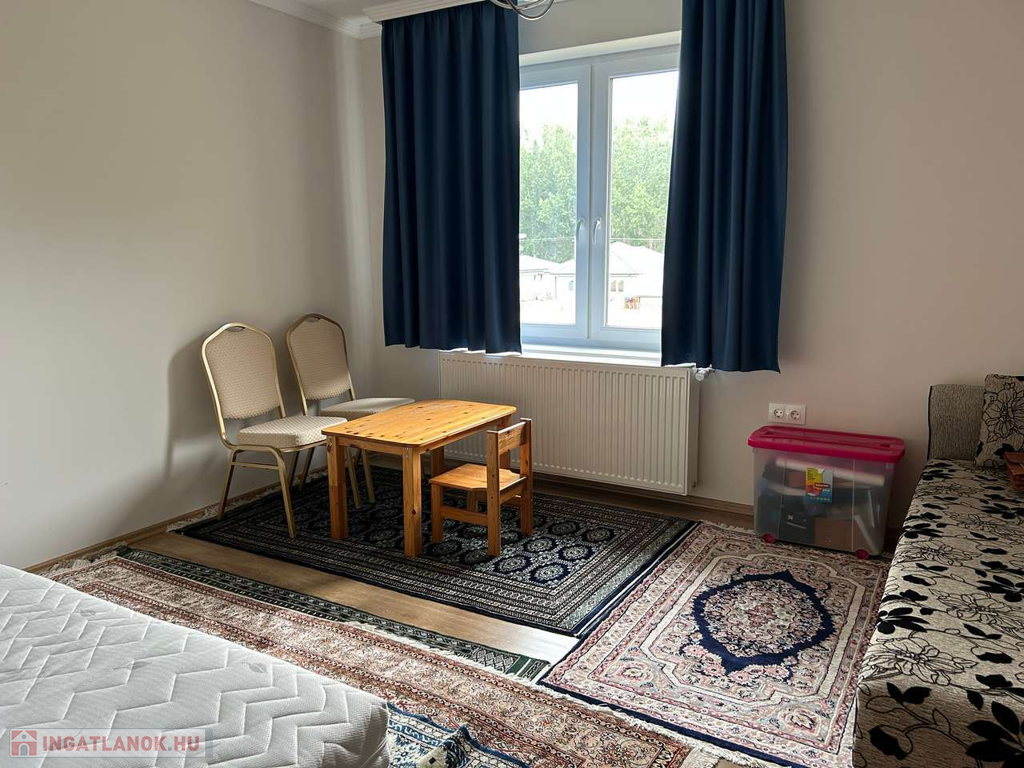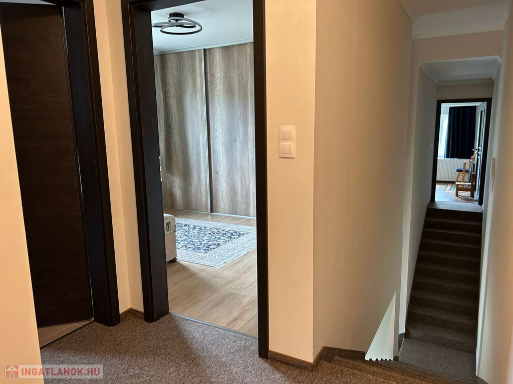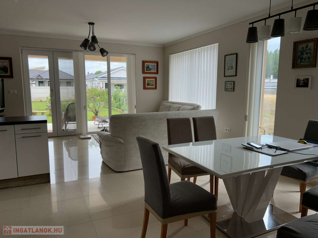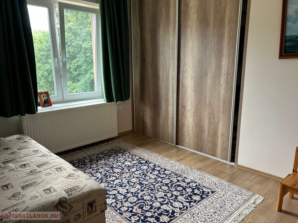 Nyíregyháza, Ságvári kertvárosban fiatal építésű aszfaltozott utcájában 148 m2-s négy különnyíló szobás, kettő fürdőszobás, szintes téglaépítésű szigetelt 4 éves iker családi ház egyik oldala garázzsal együtt kiadó. Automata garázskapu, térkövezett garázsfelhajtó hol még egy autó parkolhat, kaputelefon, parkosított udvar mely öntözőrendszerrel van kiépítve és fúrott kútról vezérelt. Költözni 2025 09. 01. Kaució kettő havi!