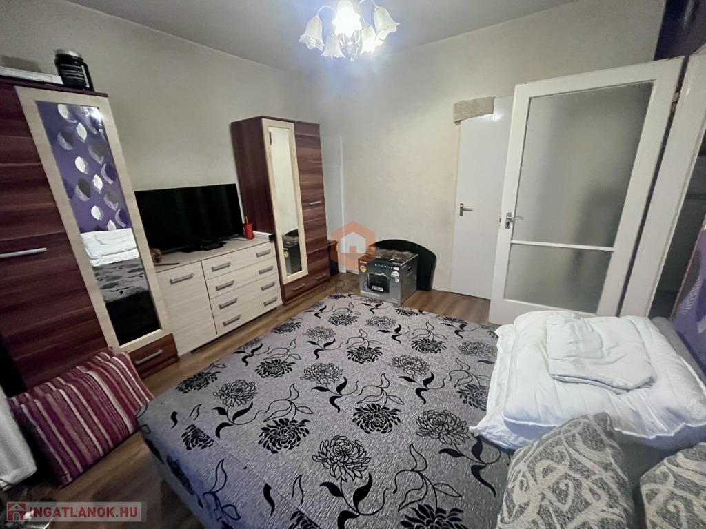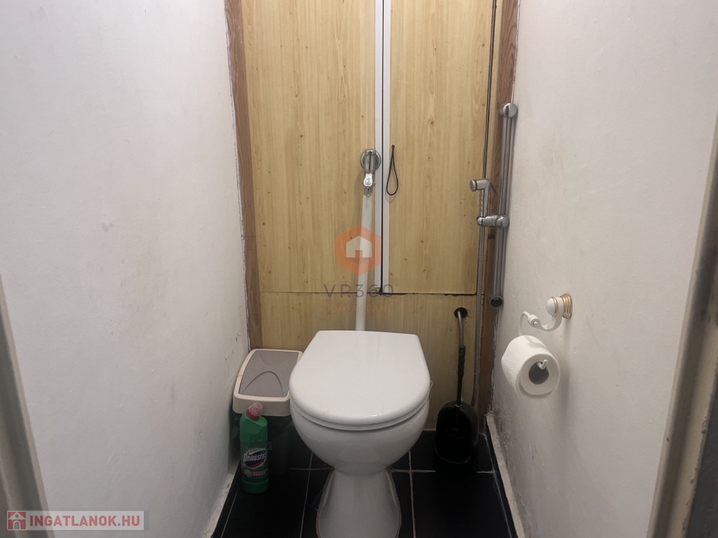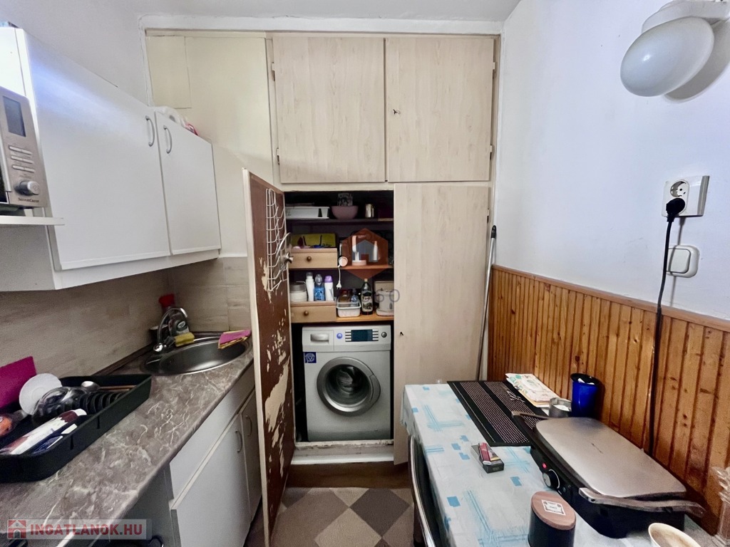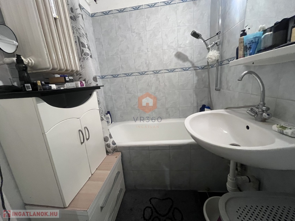 Külön helységben található a fürdő és WC. A lakás teljes berendezéssel konyhaeszközökkel van felszerelve