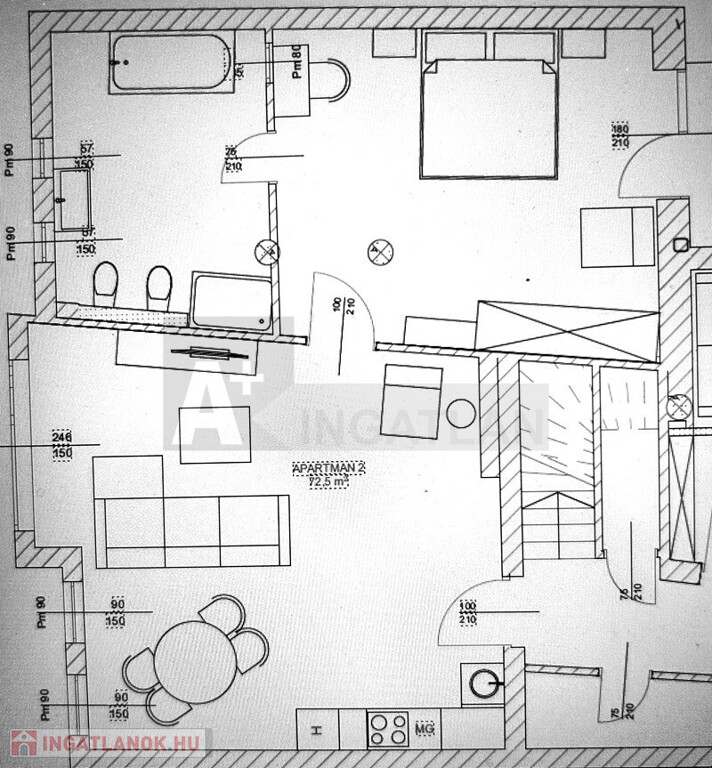 Elrendezés: nappali, hálószoba, amerikai konyha, fürdőszoba