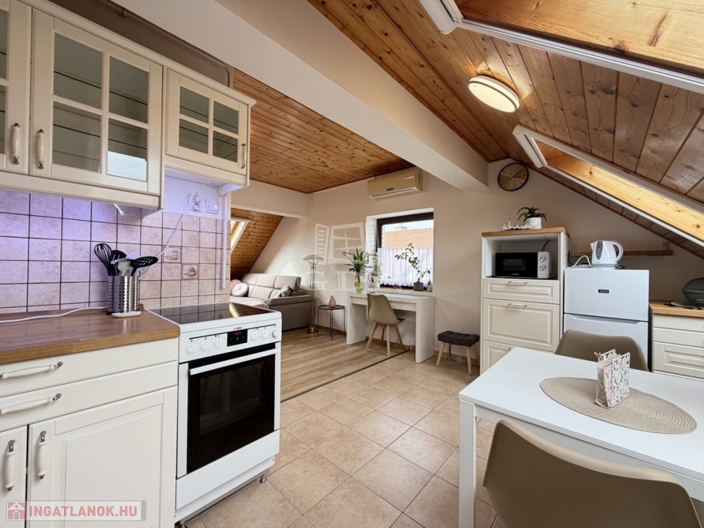 BL-004642. Öreg hegyen, (püspökkertvárosban) kiadó, 2006 ban épült, amerikai-konyhás nappali + 1 hálószoba elosztású, 48 nm nagyságú, bútorozott és gépesített, klimatizált, alacsony rezsi költségű, igényes társasházi lakás.